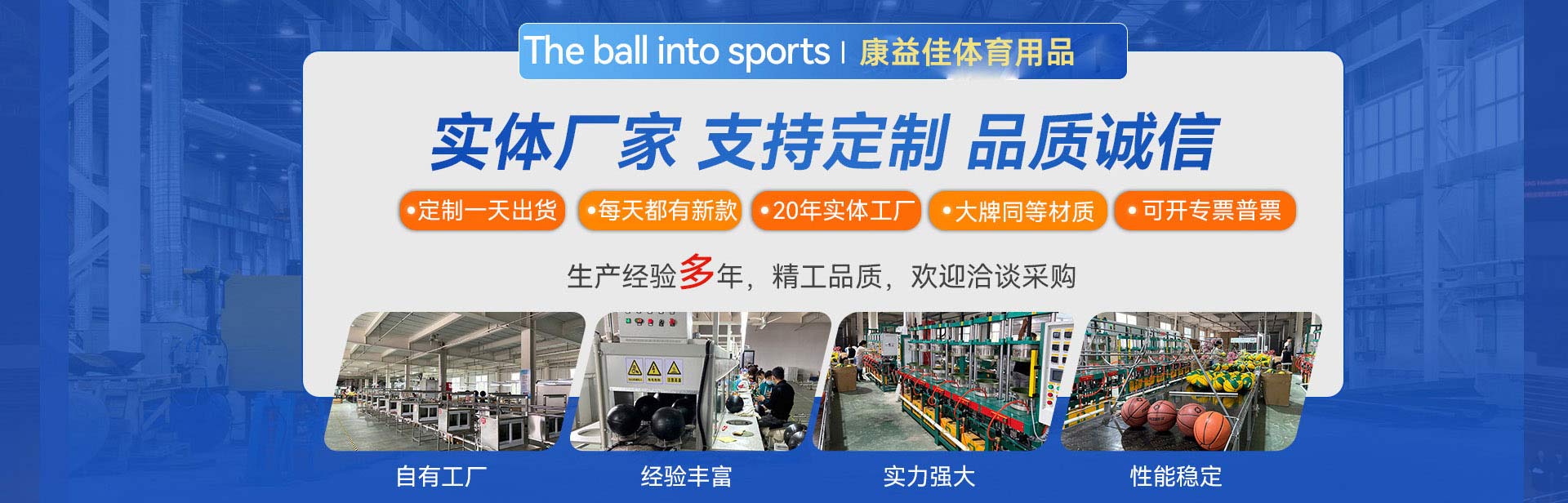 臨沂康益佳體育用品有限公司位于山東省臨沂市沂南縣,占地面積10000㎡,擁有員工200多名,公司專業生產籃球等體育用品,引進國外專業生產設備,公司產品通過iso國際質量體系認證。公司一直以來堅持“追求品質,精益求精”的宗旨,為客戶提供專業的產品和技術支持、完善的服務。